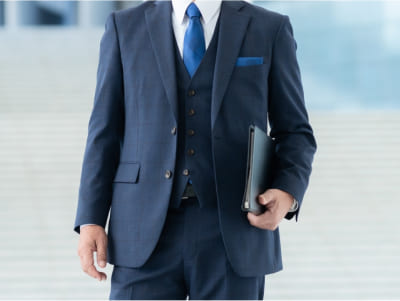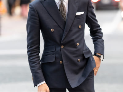 スーツの種類はボタンの数によって大まかに2種類に分かれます。ボタンが縦1列に並ぶシングルスーツは、普段使いからフォーマルな場まで万能に対応できます。より格式高く重厚感のある仕上がりにしたいときは、ボタンが2列に並ぶダブルスーツがおすすめです。