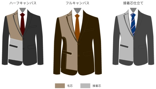 表地と裏地の間にある『芯地』は、スーツの形を美しく保つために必要不可欠なパーツです。